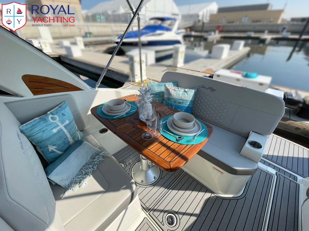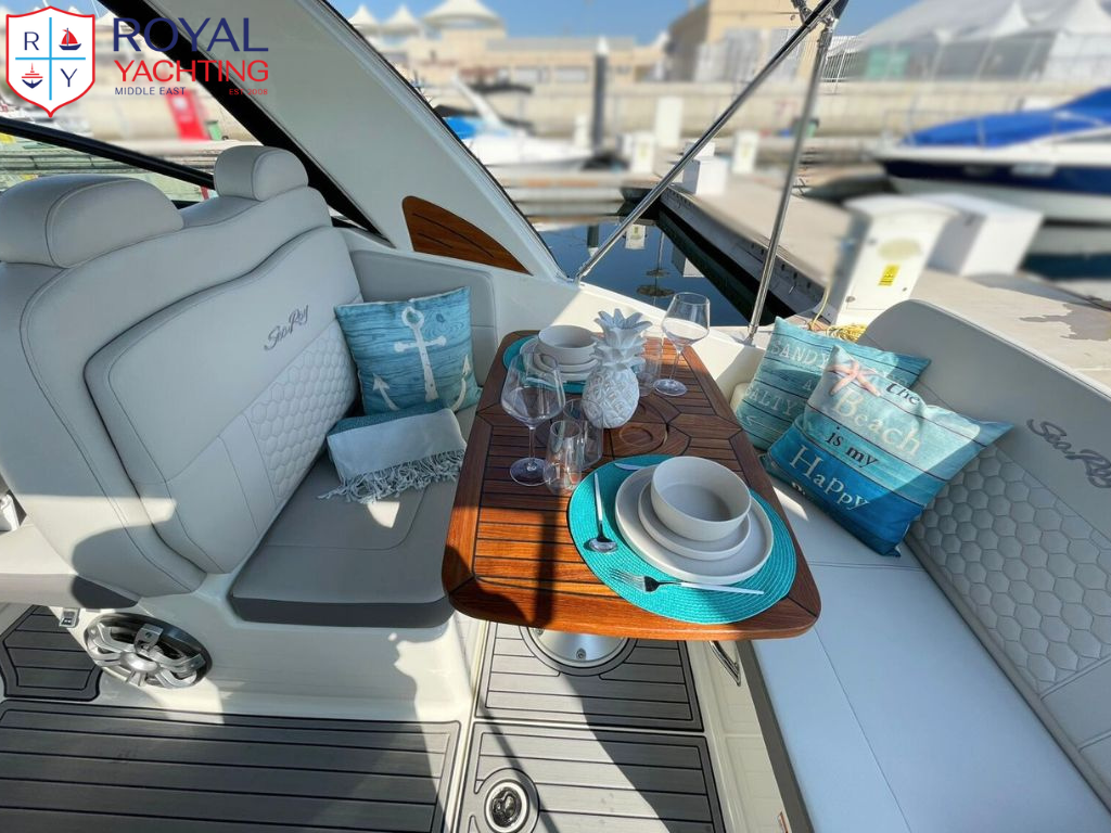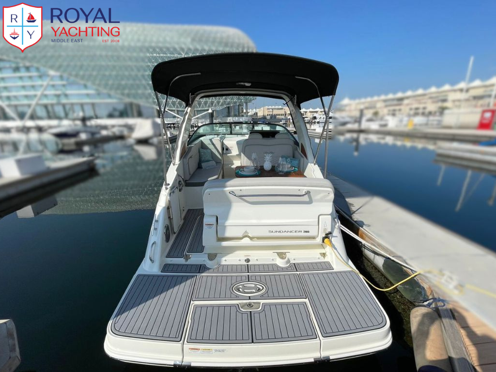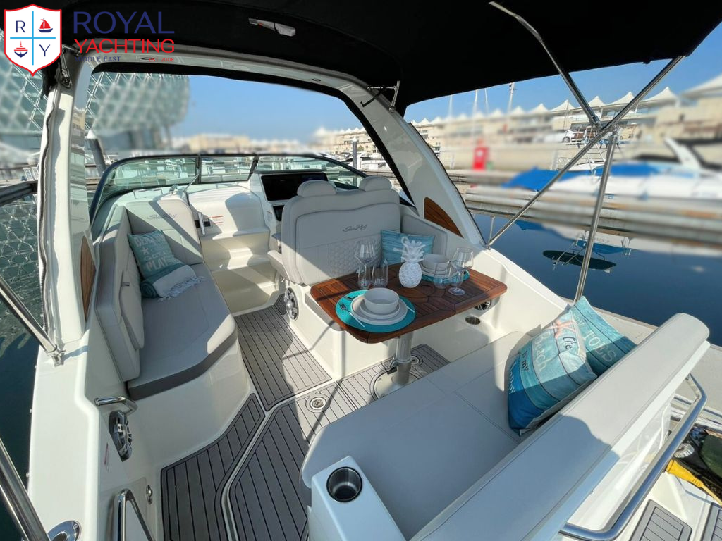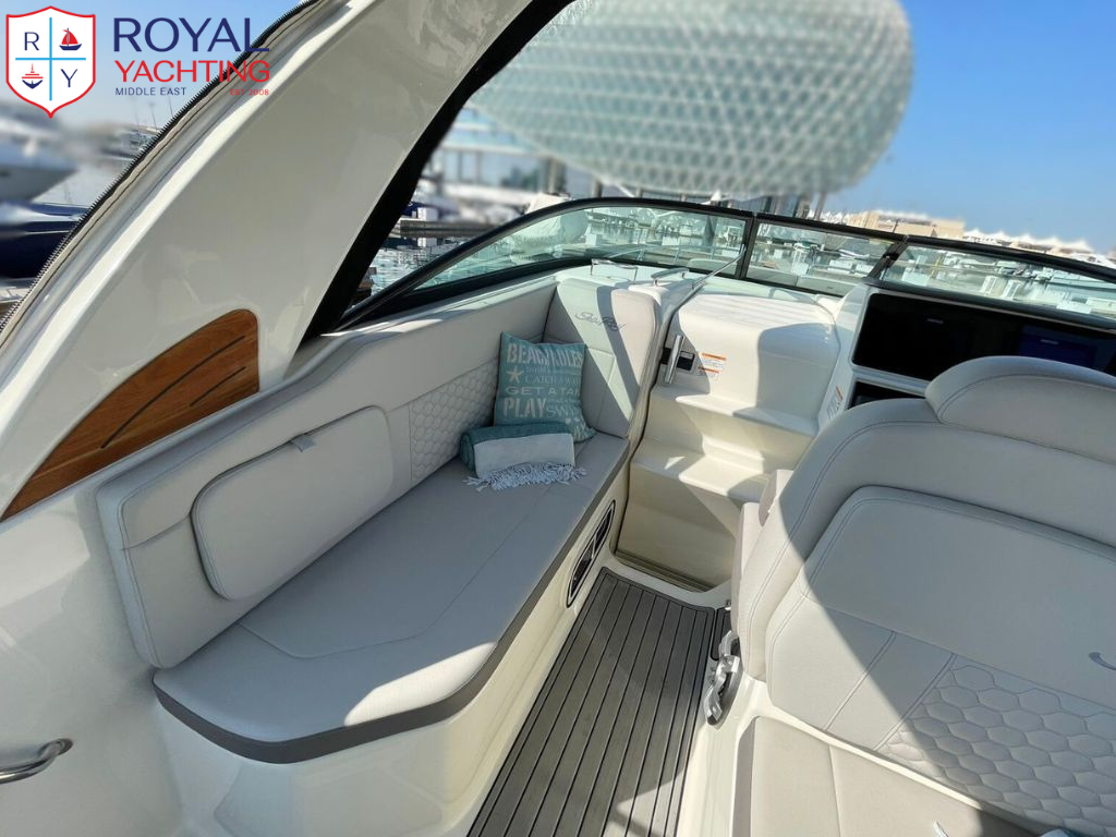 With its iconic Sundancer lines and comfort-minded amenities, the Sundancer 265 delivers a pinnacle cruising experience. Upscale features include state-of-the-art navigational technology, an open airy cabin with large windows, and an amazing amount of storage space. Plush seating welcomes every passenger, while an integrated swim platform encourages natural interaction with the water. And thanks to Sea Ray's precision-crafted hull design, the ride quality is effortlessly smooth. Make every outing something special with the Sundancer 265.
