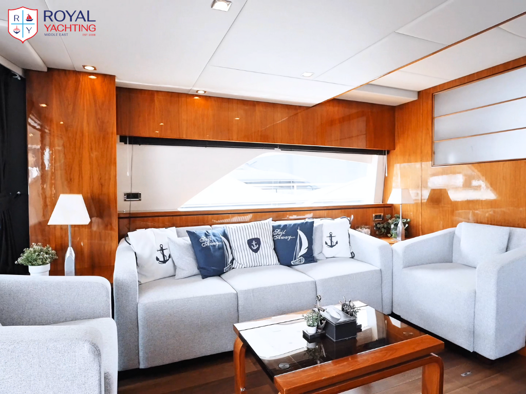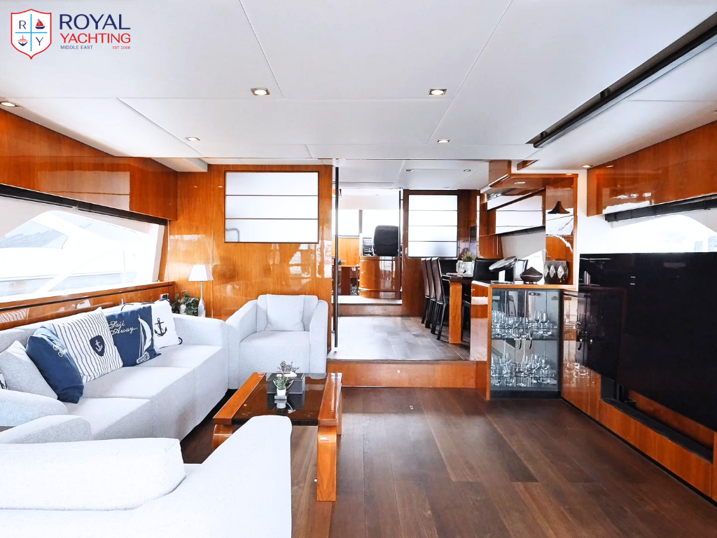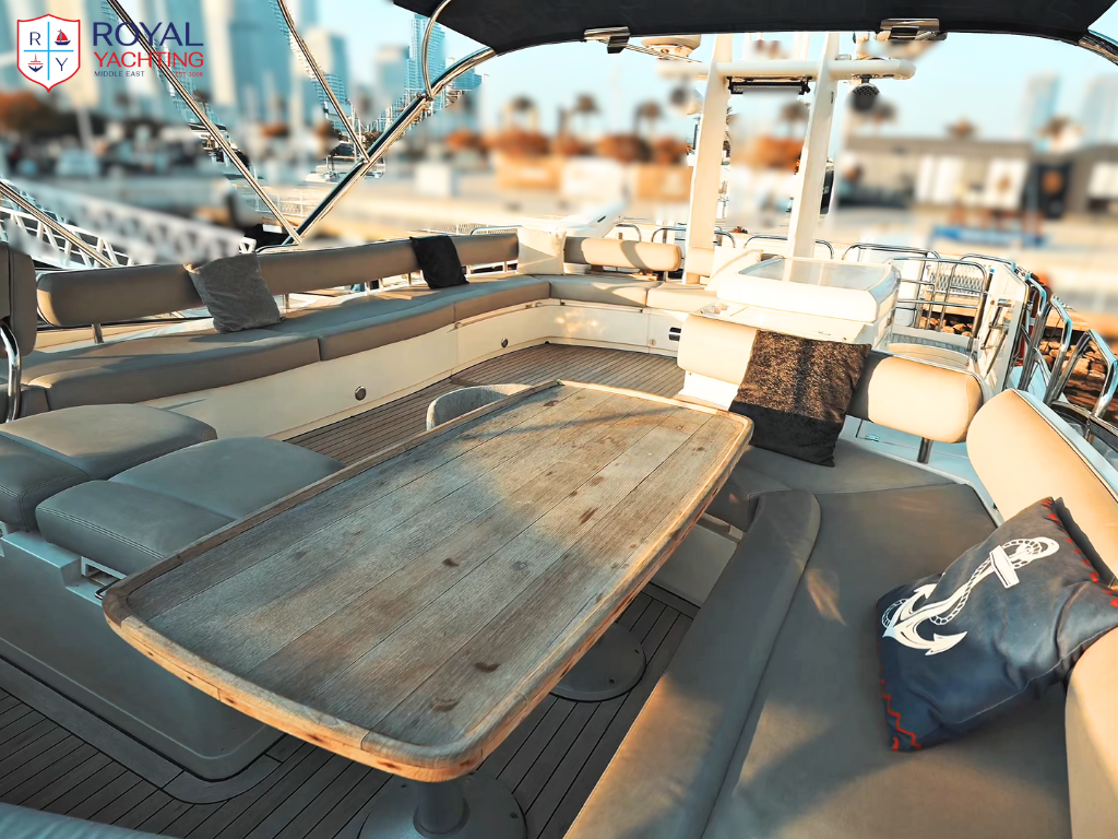 The Fairline Squadron 78 2007 (Refit 2023) is a luxury motor yacht that combines high performance with elegant design. It offers a commanding presence on the water. Crafted from durable fiberglass, the hull ensures both strength and elegance, making it a reliable choice for any maritime adventure.