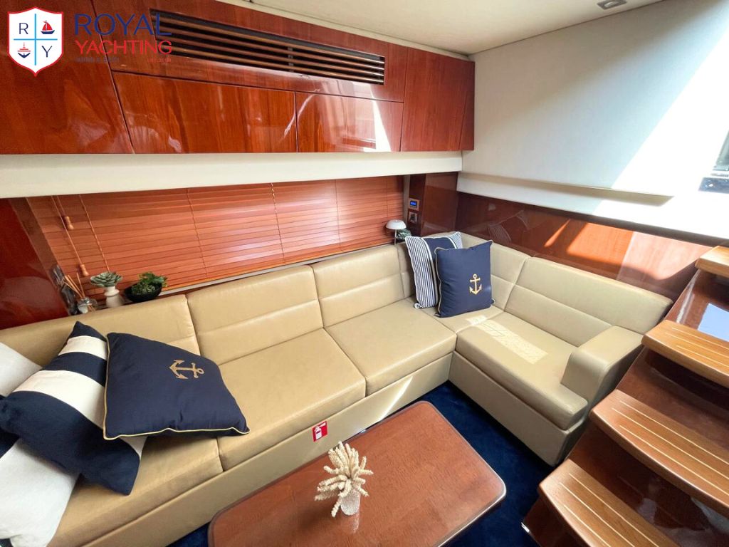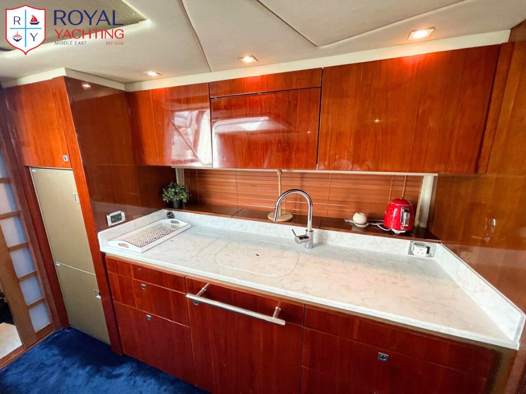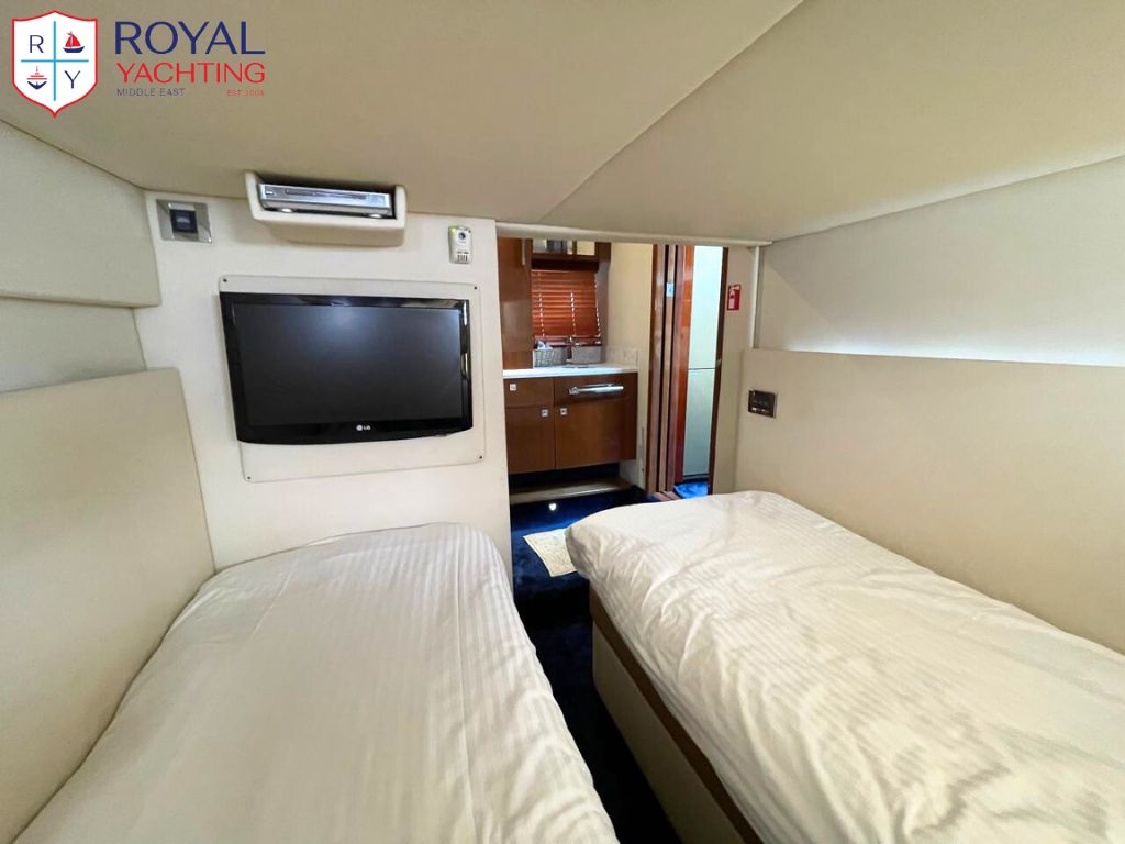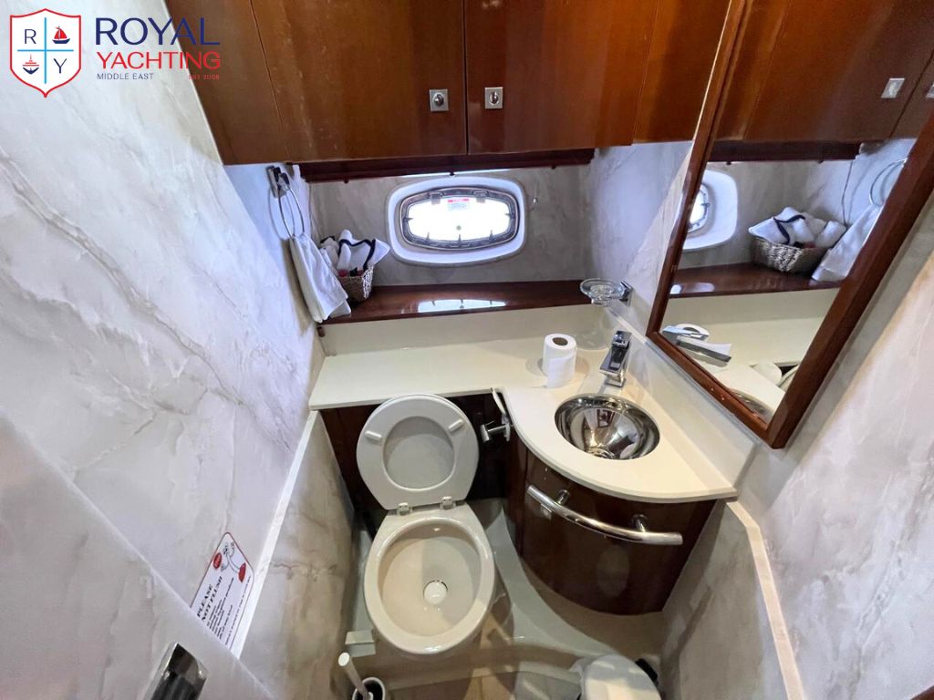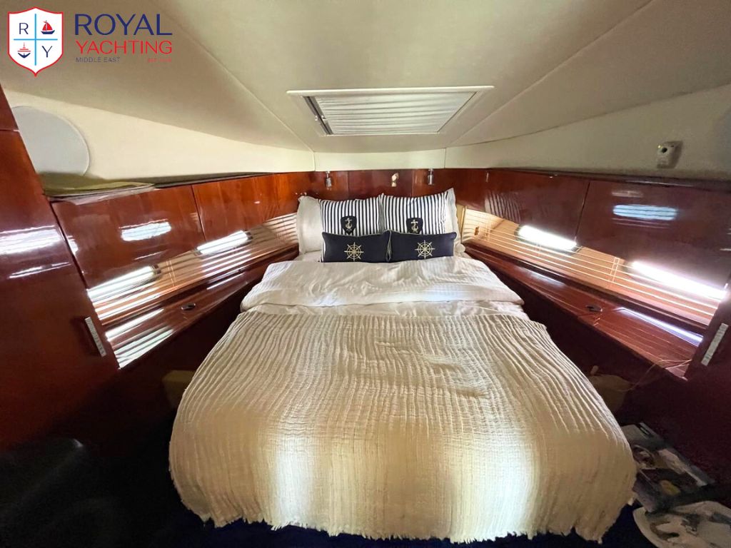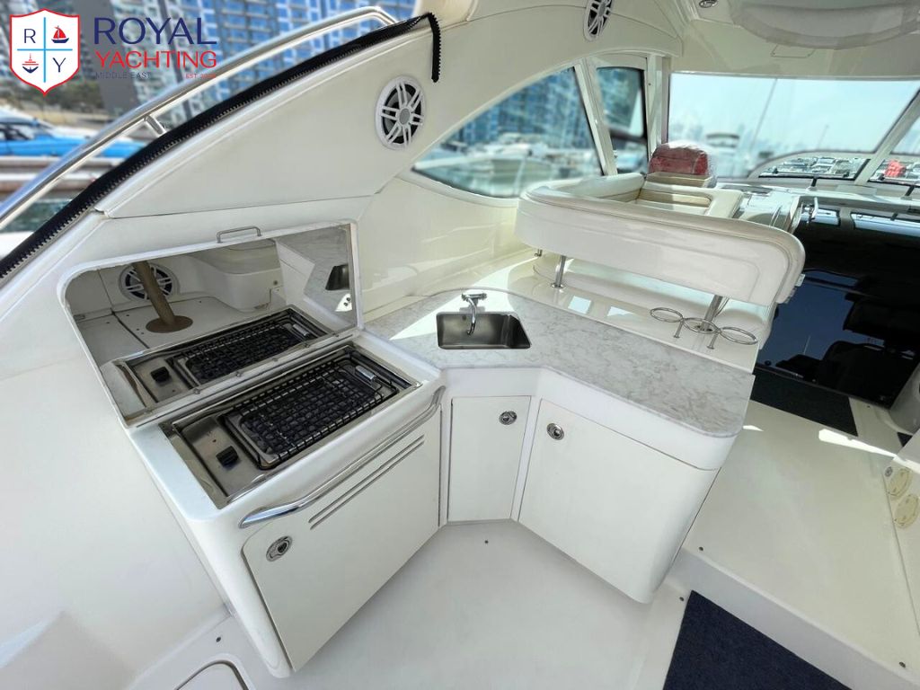 A well-maintained 2009 Searay 475 Sundancer with a total length of 50.6 feet. Among other things, the yacht has a huge saloon and cockpit, two roomy cabins, and a hydraulic platform. The strong Cummins 480 HP engines that power this planing hull sport boat have less than 565 hours between them.
