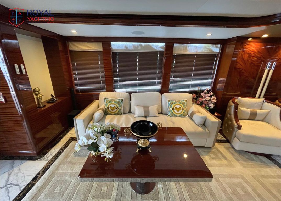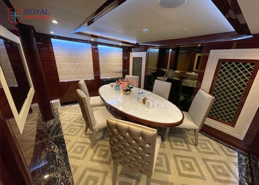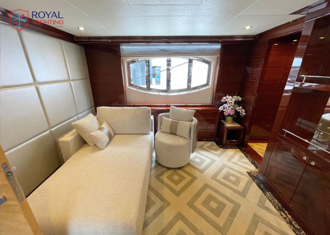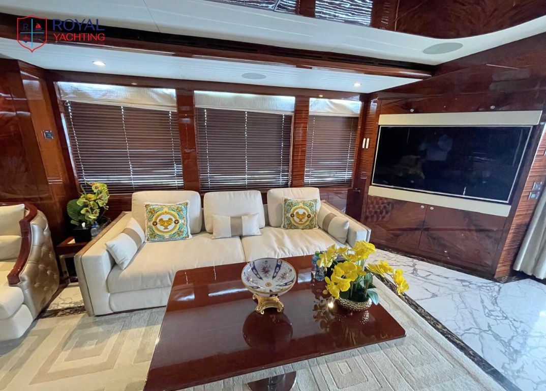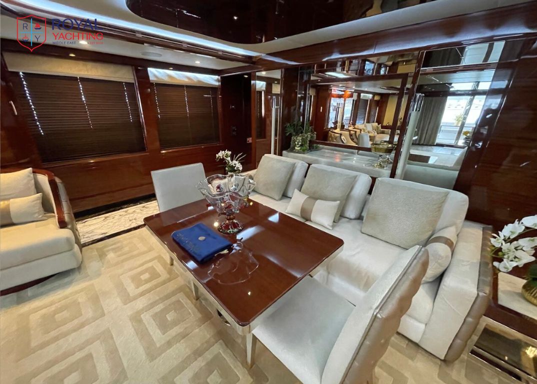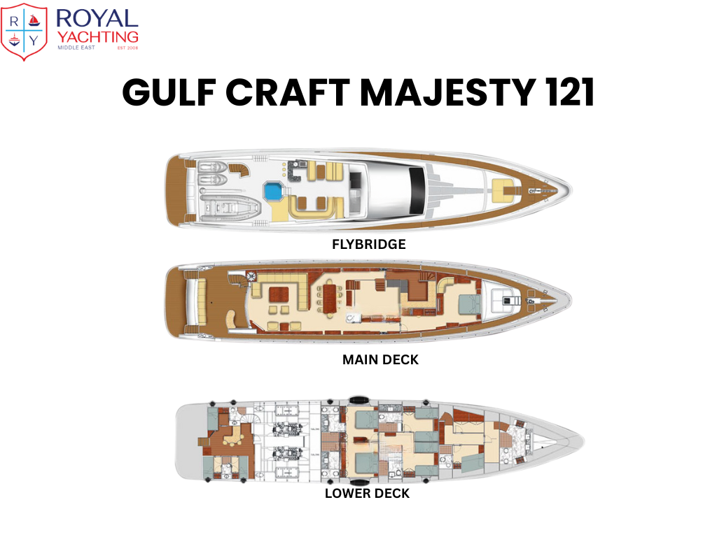 Step aboard this 37-meter masterpiece by Gulf Craft, blending sleek design, lavish interiors, and thrilling performance. With 5 luxurious cabins, a Jacuzzi, and a top speed of 25 knots, the Majesty 121 is your floating palace for unforgettable voyages.