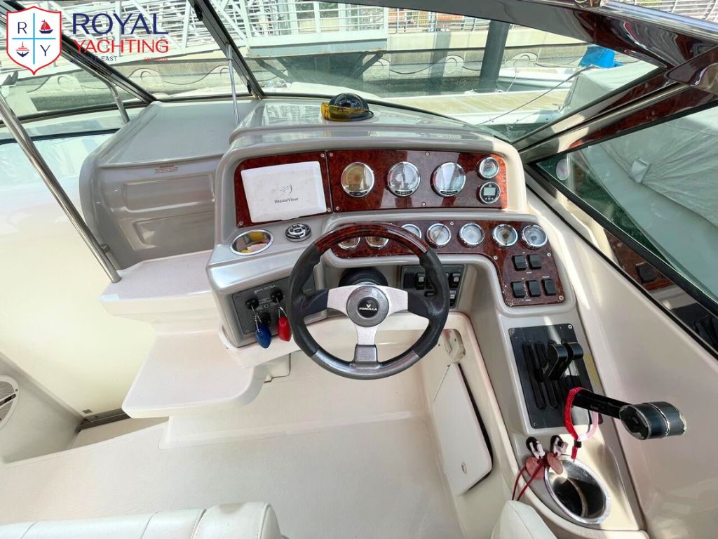 The 2004 Formula 280 Sun Sport is a stylish and sporty 28?foot performance cruiser designed for comfortable day boating with the option for overnight stays. It features a deep?V hull that provides a smooth, stable ride, and a spacious cockpit layout built for socializing, complete with wraparound seating and thoughtful storage throughout.