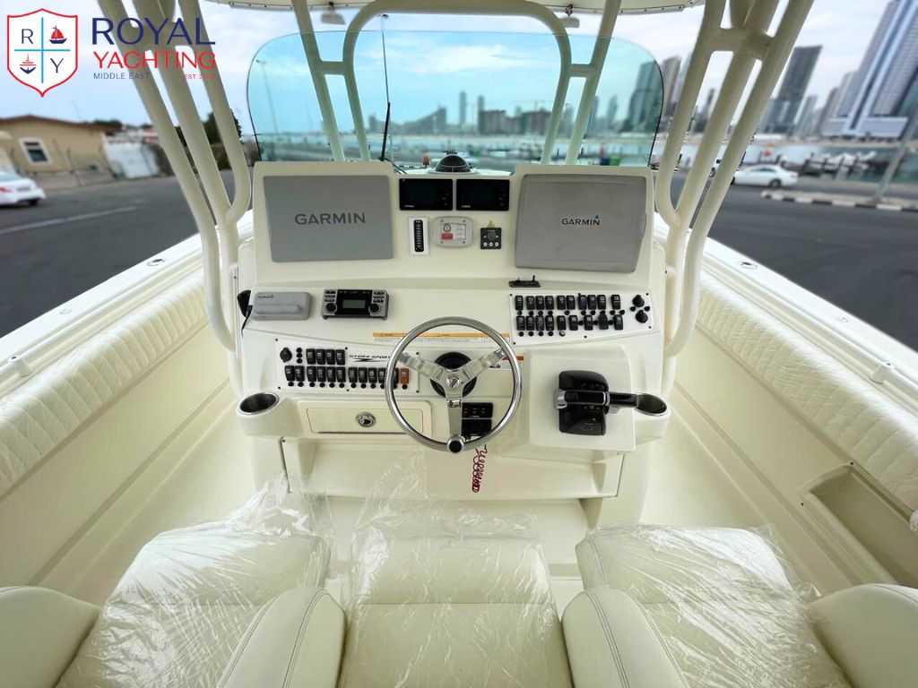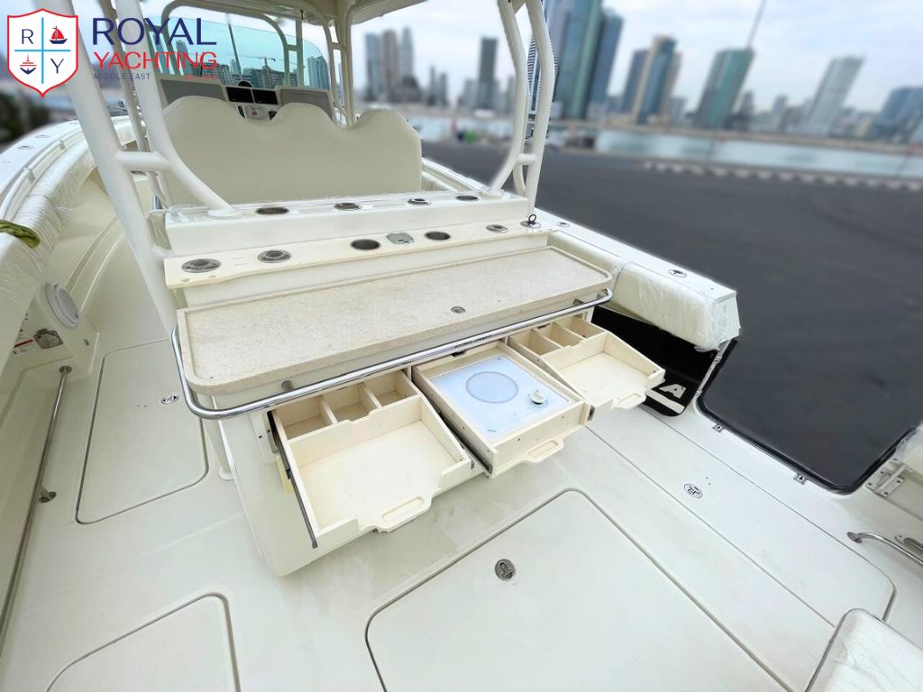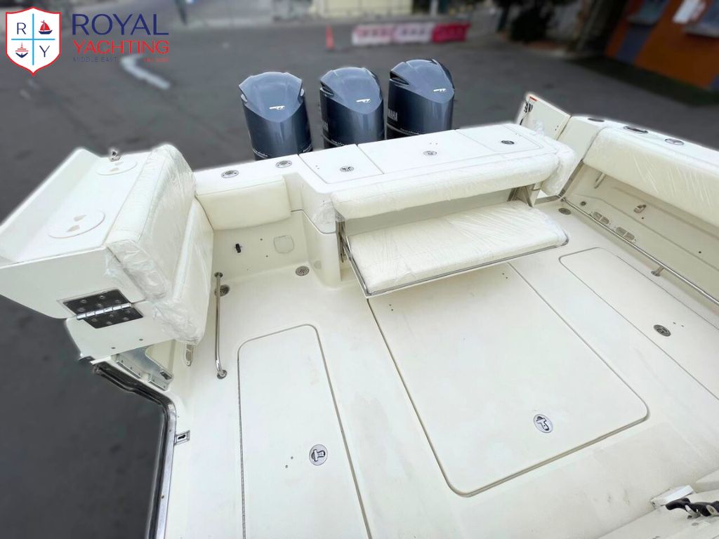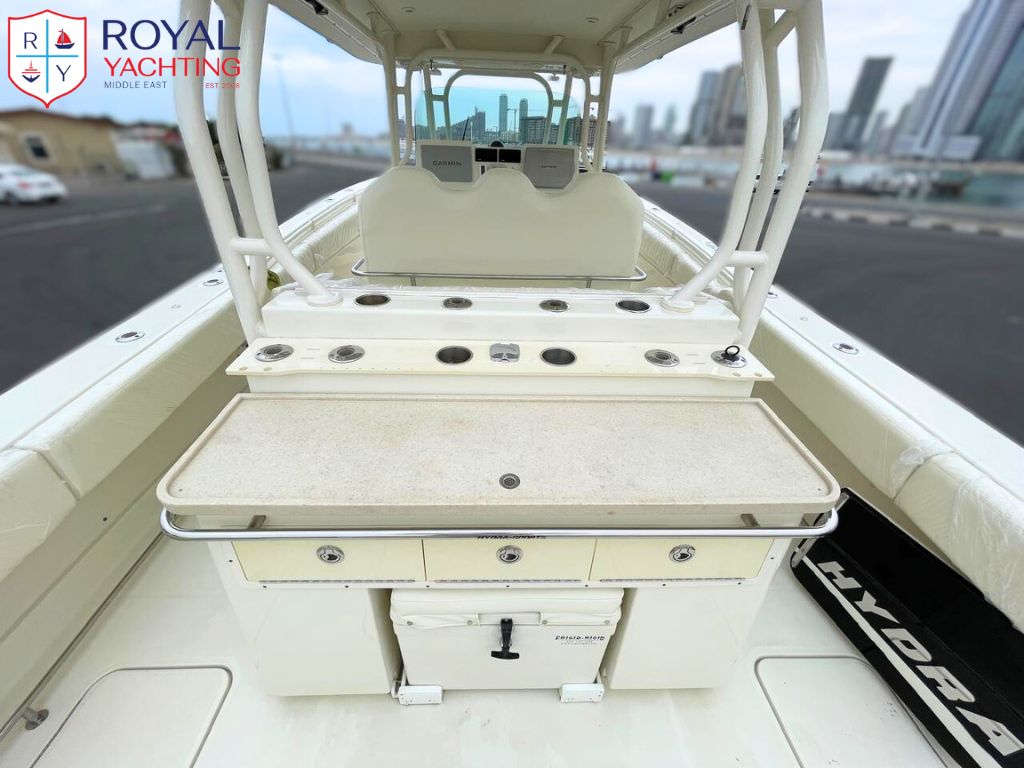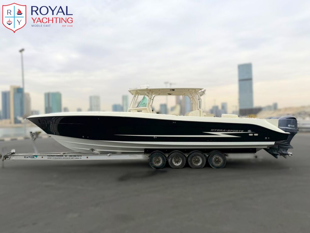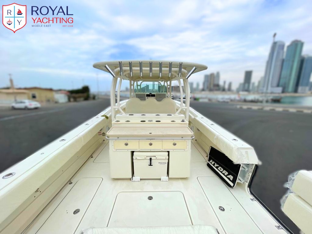 The 2011 Hydra Sports 42 is a powerful offshore center console featuring a deep V hull, a wide 12'2" beam, and triple engine capability up to 1,050 hp, offering a stable ride, huge deck space, and strong fishing functionality.