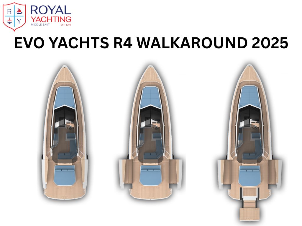 The 2025 Evo Yachts R4 Walk Around is a sleek, automotive?inspired day cruiser powered by twin Volvo Penta IPS diesel engines, offering smooth handling and a spacious walkaround layout. With features like hydraulic XTensions for an expanded beach area and modern comforts including air conditioning and a generator, it’s designed for stylish, versatile days on the water.
